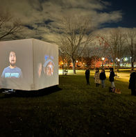 Tous ces visages projetés en format géant, ce sont les visages du changement. On retrouve parmi eux des intervenants, des enseignants, des membres d’organismes, des représentants d’institutions, des bénévoles, des activistes, des gens ordinaires. Ils se dressent devant nous pour signifier leur engagement auprès de leur communauté au quotidien. Ils nous envoient des pensées, des témoignages, nous sourient, nous interpellent, croisent notre regard afin que nous prenions également part à ce changement. Cet appel se matérialise sur l’une des faces du cube avec une partie intéractive qui intègre le public à l'œuvre.
