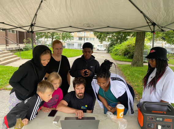 Au cours du mois d'août, le réalisateur Guillaume Soucy a rencontré divers groupes de la communauté de Saint-Michel afin d'inclure dans la fresque leurs idées et leurs avatars, créés à l'aide de l'intelligence artificielle. À Portée De Mains s'est d'abord rendu au Forum jeunesse Saint-Michel, puis le Carrefour populaire Saint-Michel. L'équipe a ensuite visité le HLM André-Corneau du programme ITMAV pour finir avec une séance ouverte au public au parc George-Vernot.